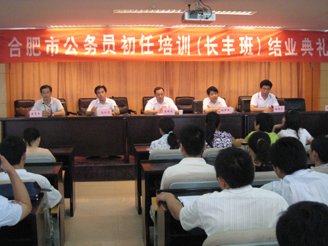 8月14日,由長豐縣人事局和合肥市人才培訓中心組織的2008年合肥市公務員初任培訓(長豐班)在市人才培訓中心隆重舉行結業(yè)典禮,長豐縣委組織部常務副部長李純俊、長豐縣人事局局長谷長志、市人事局公務員管理處處長胡坤焯、 市人事考試(評審 培訓 軍培)中心主任崔賢平和長豐縣人事局副局長魏周華等同志出席結業(yè)典禮并為優(yōu)秀學員頒獎。