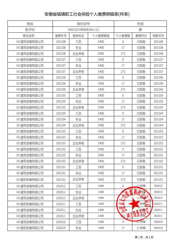 3、社保證明:支付寶中搜索“社保查詢”,點擊“社保查詢”欄目內(nèi)“繳費帳目明細”并截圖(2021年6月至今,如附圖2);